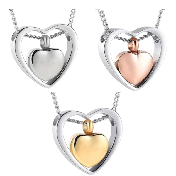 Herzförmiger Ascheanhänger mit Innenherz - 3 Farben