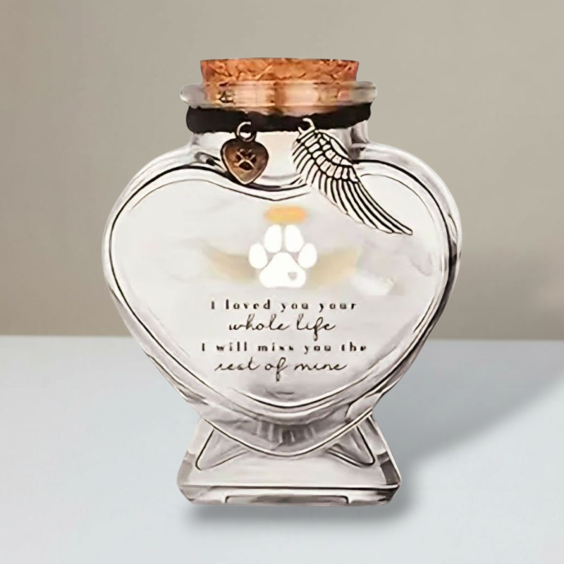 De memorial flesjes zijn klein van formaat en daardoor makkelijk neer te zetten op een dierbare plek, zoals een herdenkhoekje of naast een foto. Het hartje vormt een blijvende herinnering die je elke dag kracht en troost kan geven, los van of in combinatie met een honden urn of katten urn.