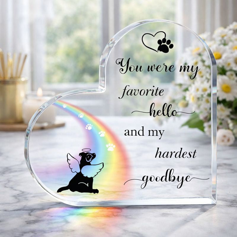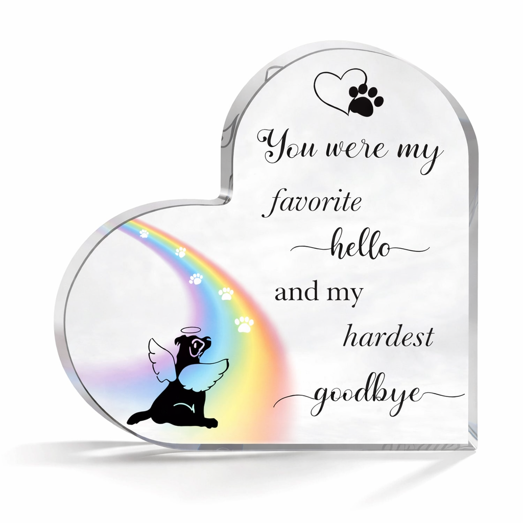 Eine berührende Gedenkfigur für Ihren geliebten Hund mit der ergreifenden Inschrift: „Du warst mein schönstes Hallo und mein schwerster Abschied.“ Eine wunderschöne Ergänzung für Ihre Gedenkstätte zu Hause, eine greifbare Erinnerung an die besondere Verbindung zu Ihrem Hund. Sie ist auch ein bedeutungsvolles Geschenk für jemanden, der kürzlich seinen Hund verloren hat, als Zeichen des Mitgefühls und der Unterstützung in dieser schweren Zeit.