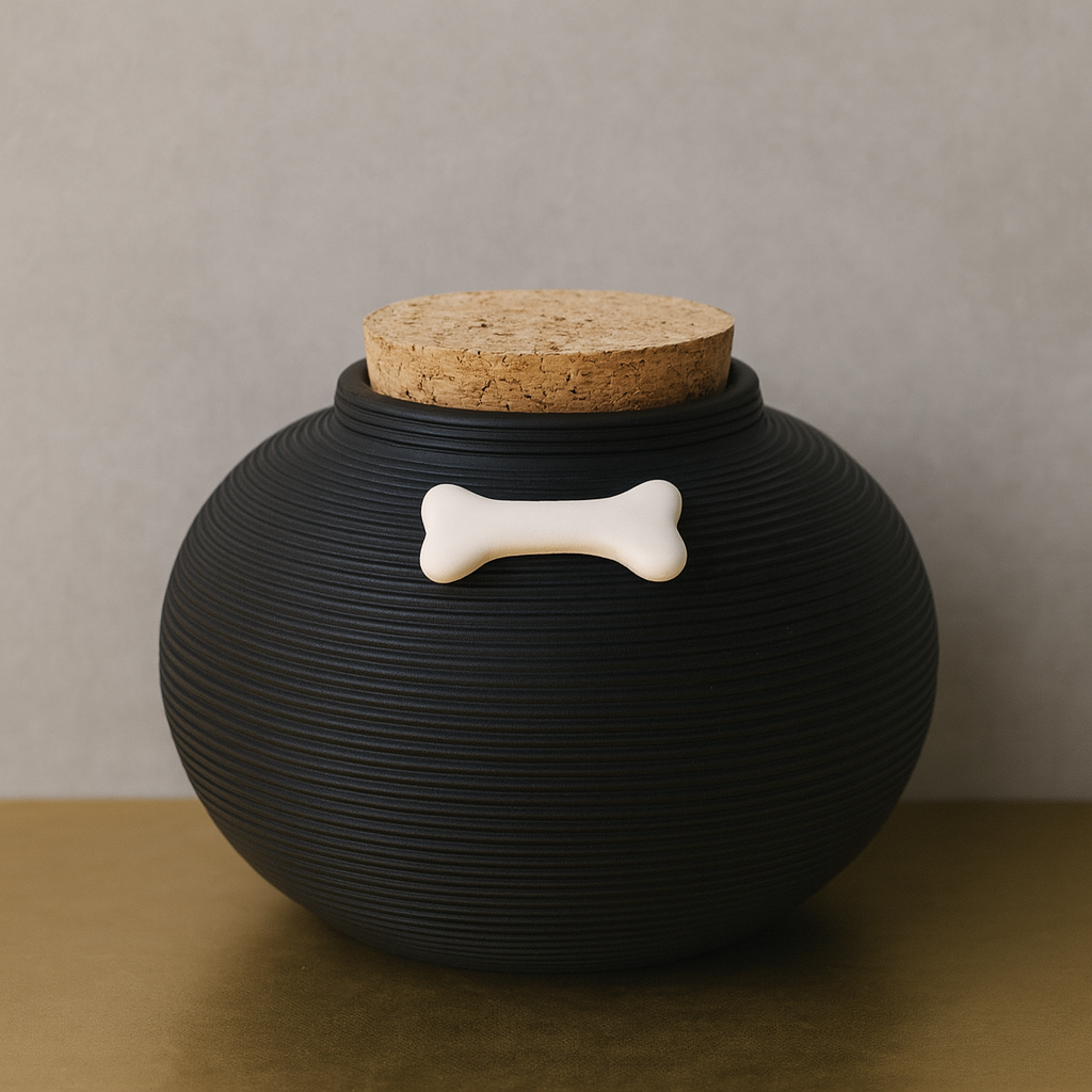 Diese stilvolle, mattschwarze Urne eignet sich ideal zur sicheren Aufbewahrung der Asche Ihres geliebten Haustieres. Sie ist aus hochwertiger Keramik gefertigt und fügt sich harmonisch in jedes Interieur ein. Der Deckel lässt sich zum Befüllen leicht öffnen. Sie erhalten außerdem zwei goldfarbene Sake-Hänger, die Sie nach Belieben anbringen oder abnehmen können.